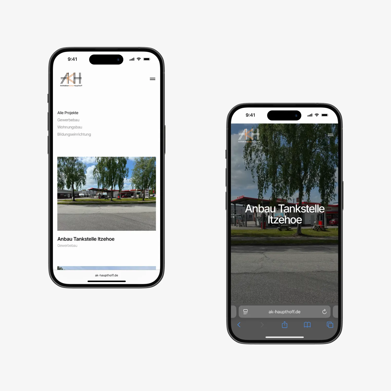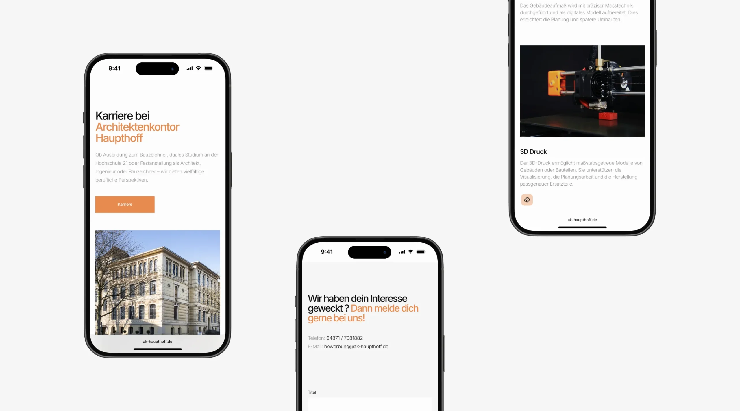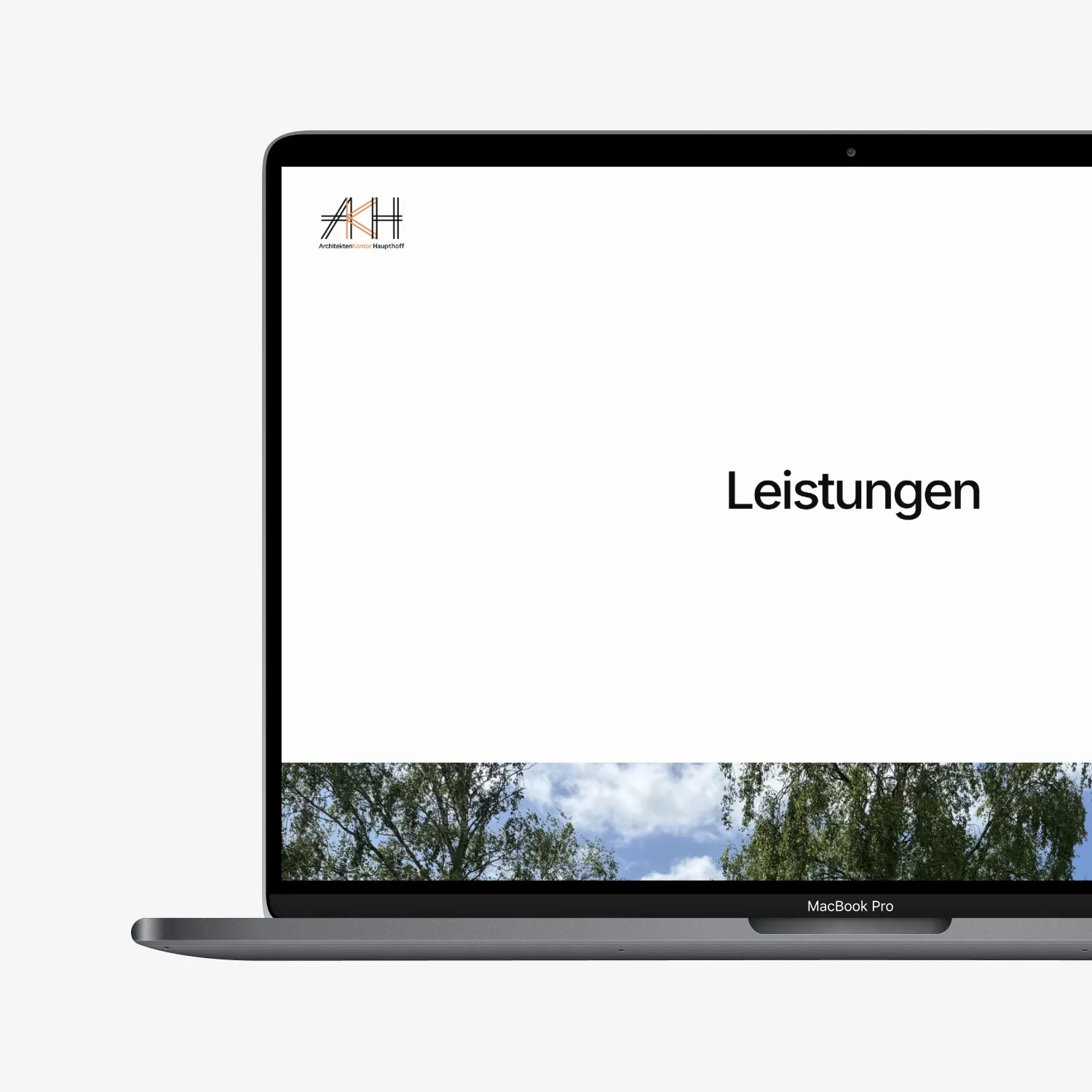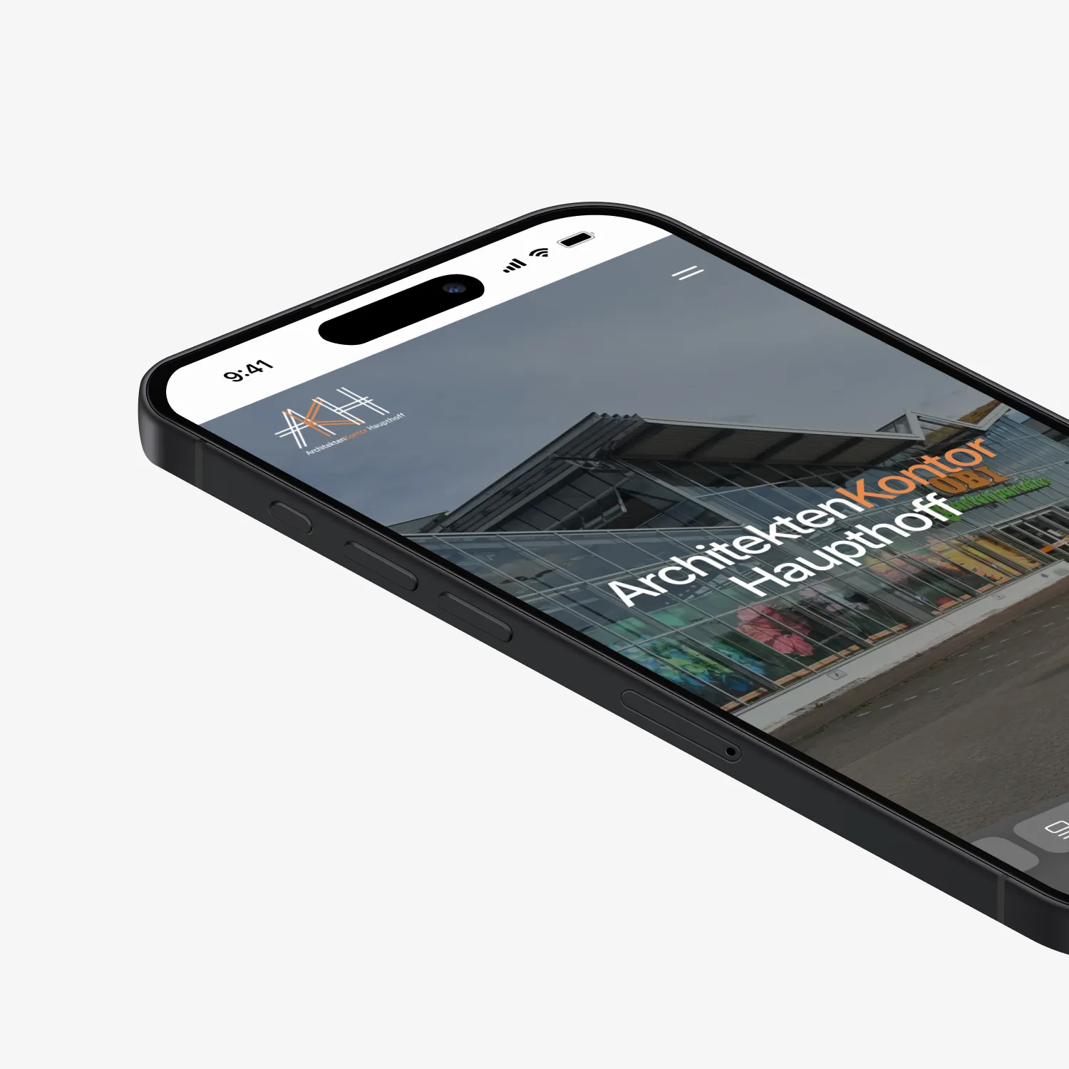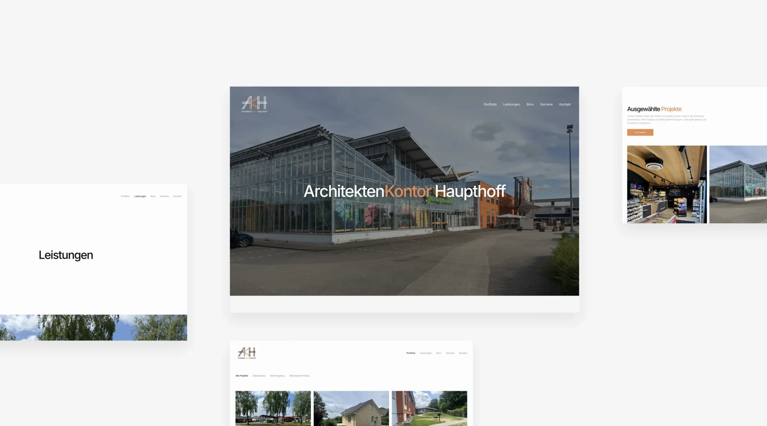 Struktur, Identität & Zukunft Das Ergebnis ist eine Website, die die Projekte, Leistungen und Besonderheiten von ArchitektenKontor Haupthoff in einem modernen und klaren Design präsentiert.