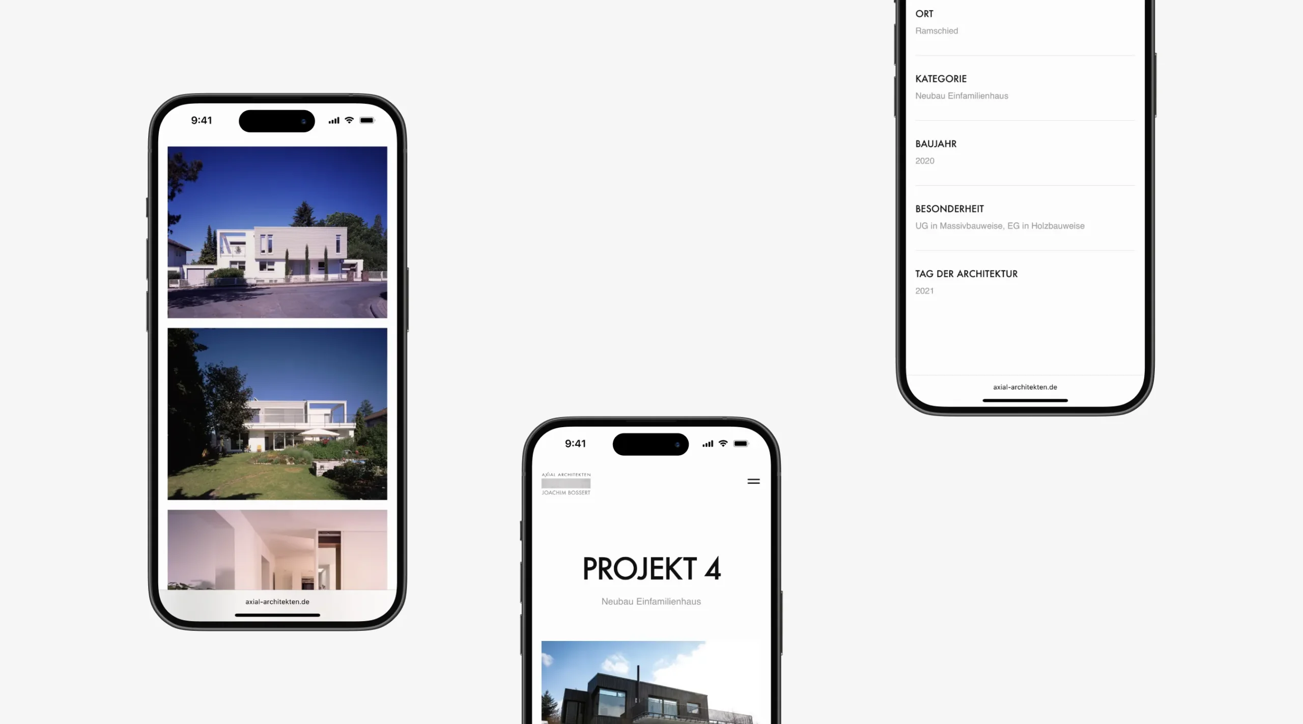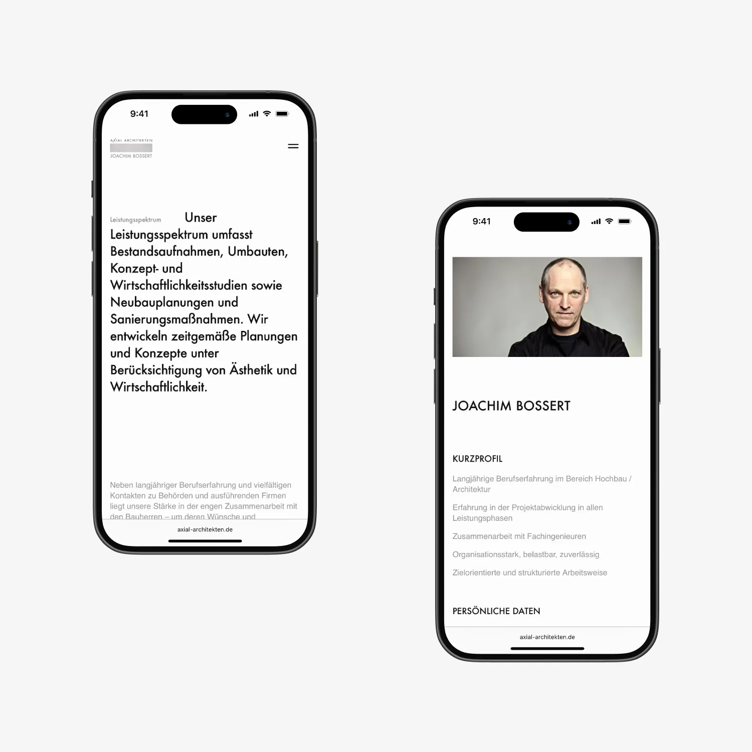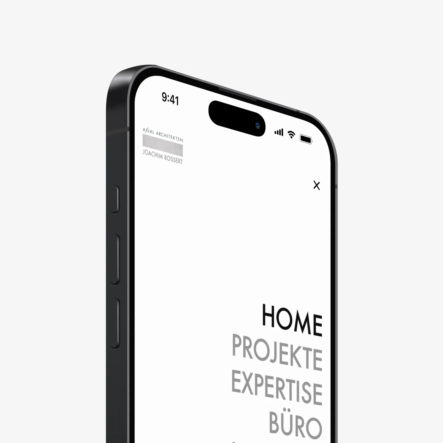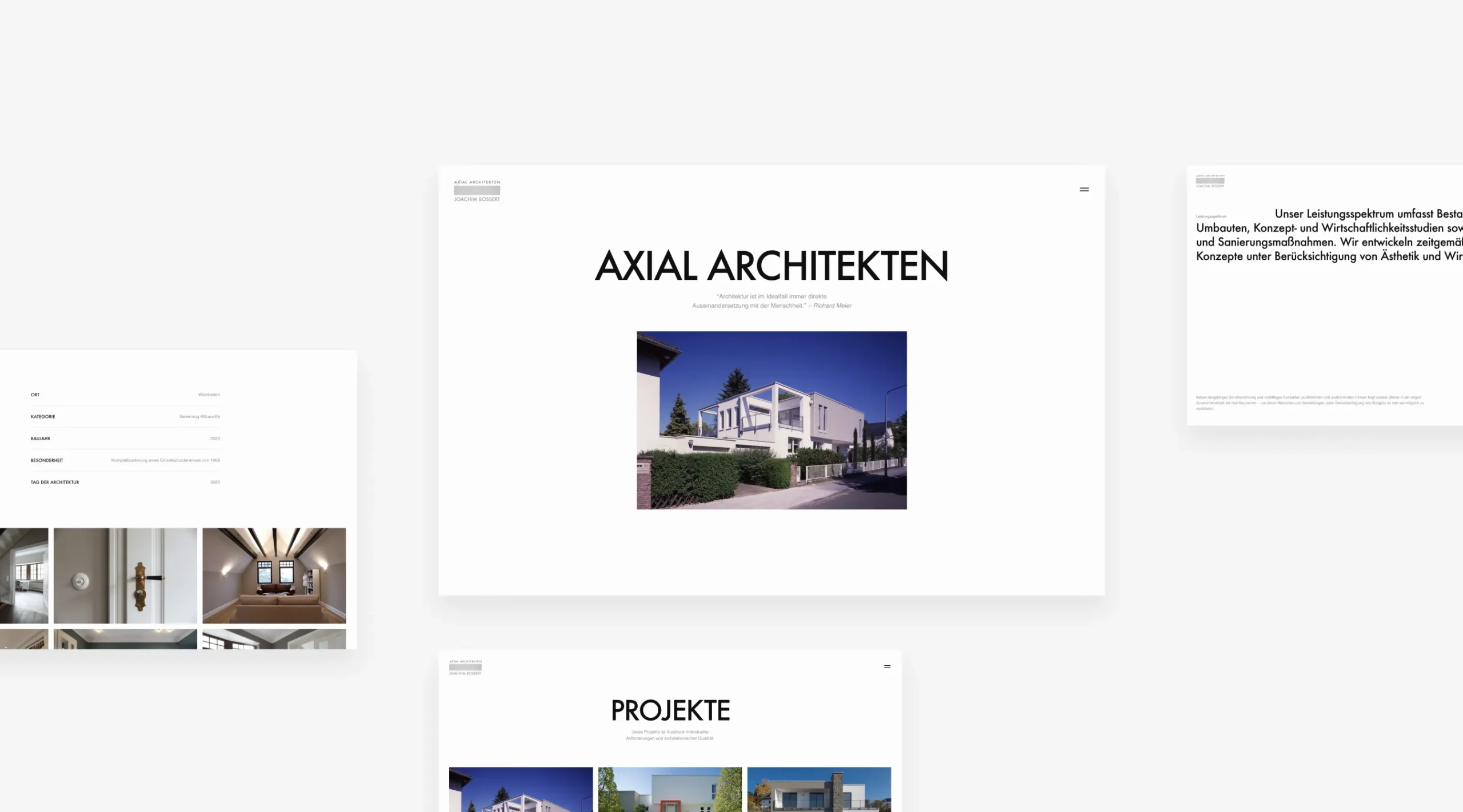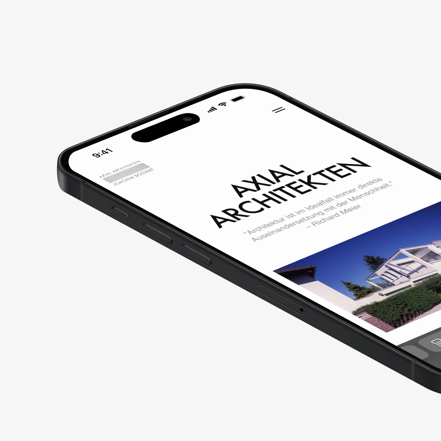 Re-Branding & Fokussierung Der Anspruch bestand darin, das Büro Axial Architekten durch ein visuelles Re-Branding klar zu positionieren und die Website als hochwertige Plattform für die Präsentation der Projekte zu nutzen.