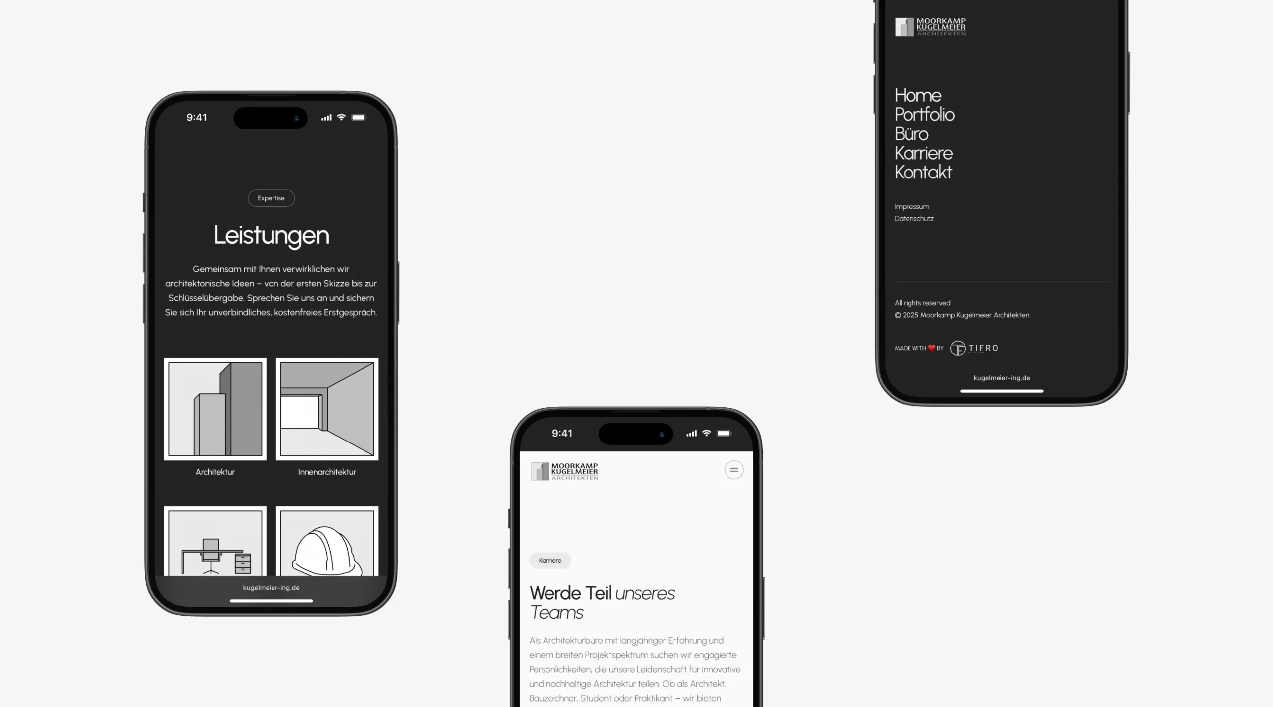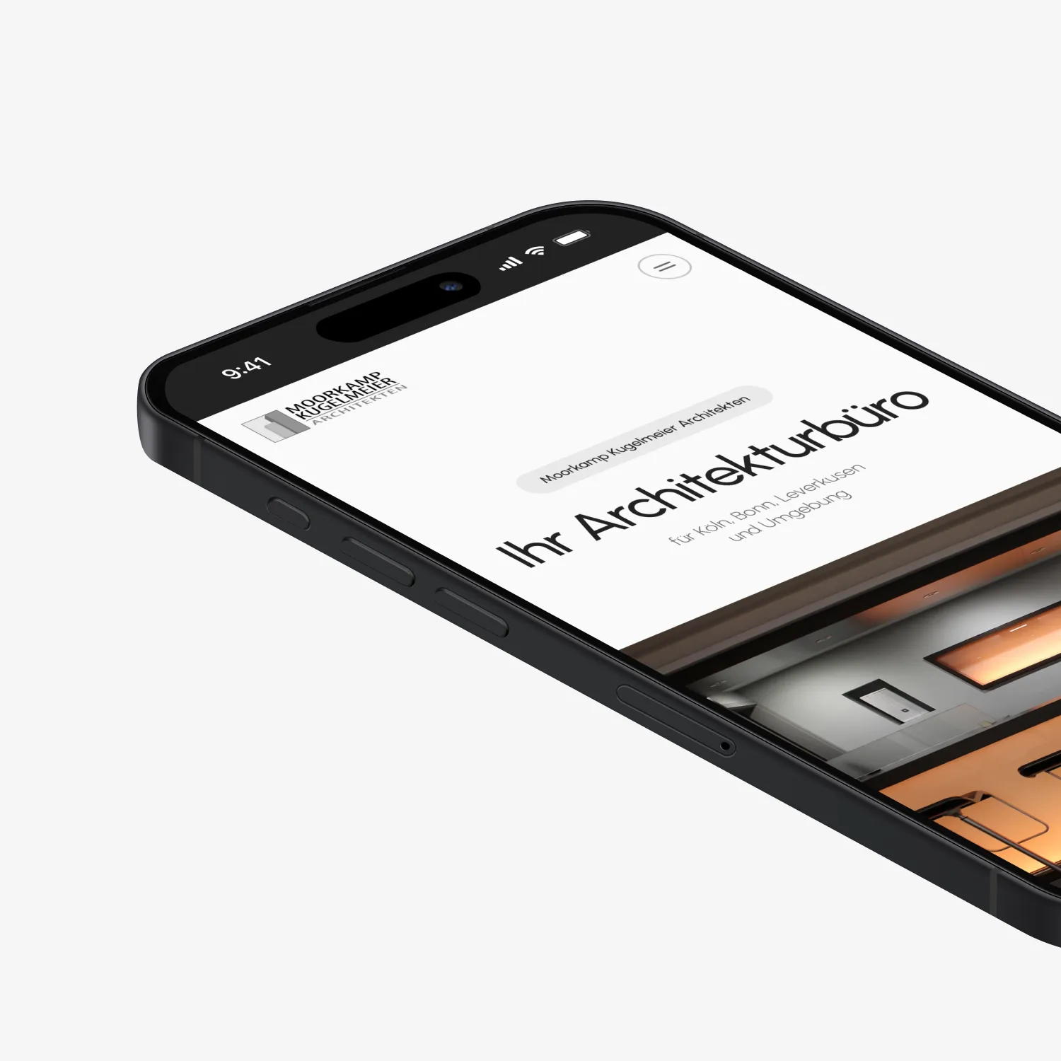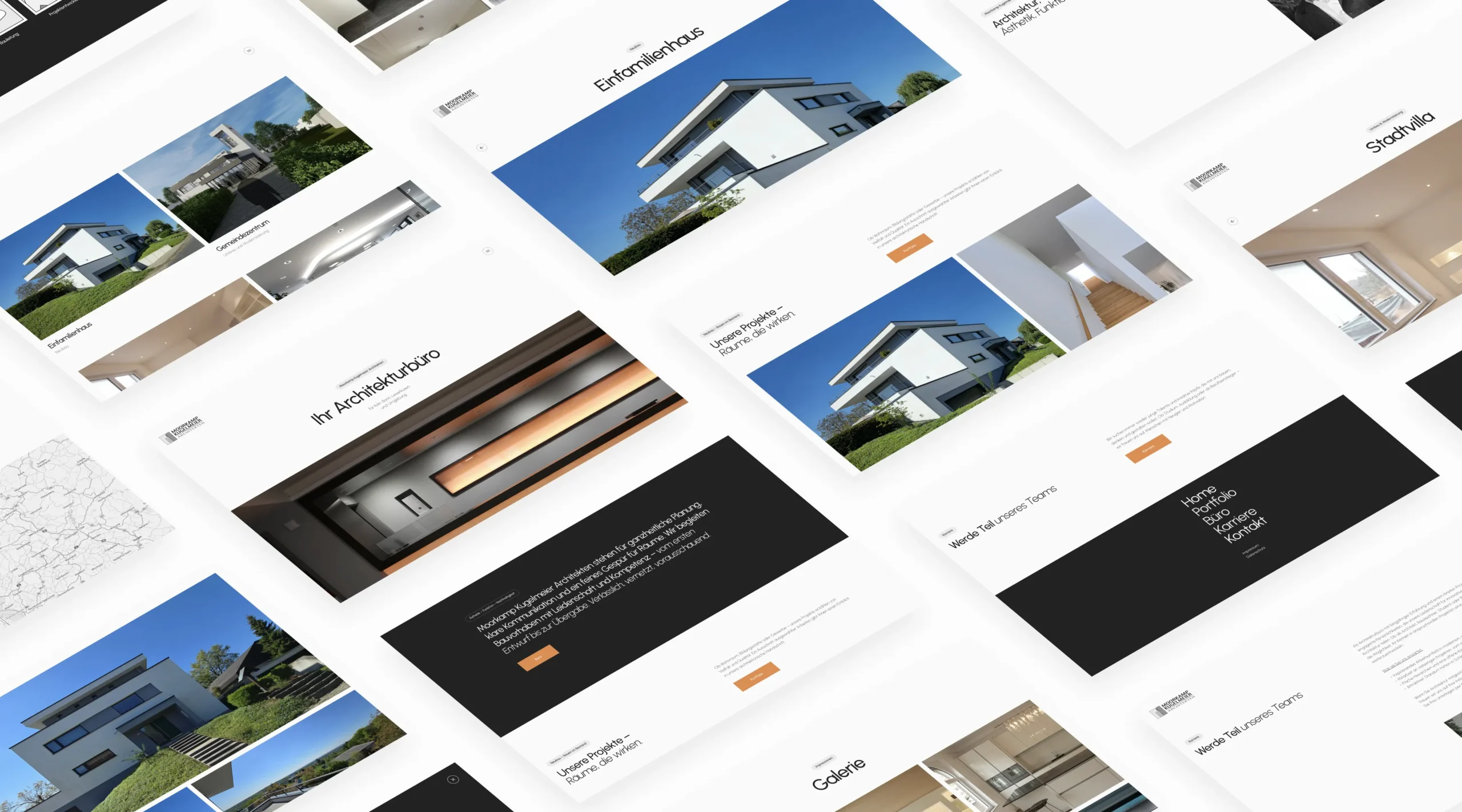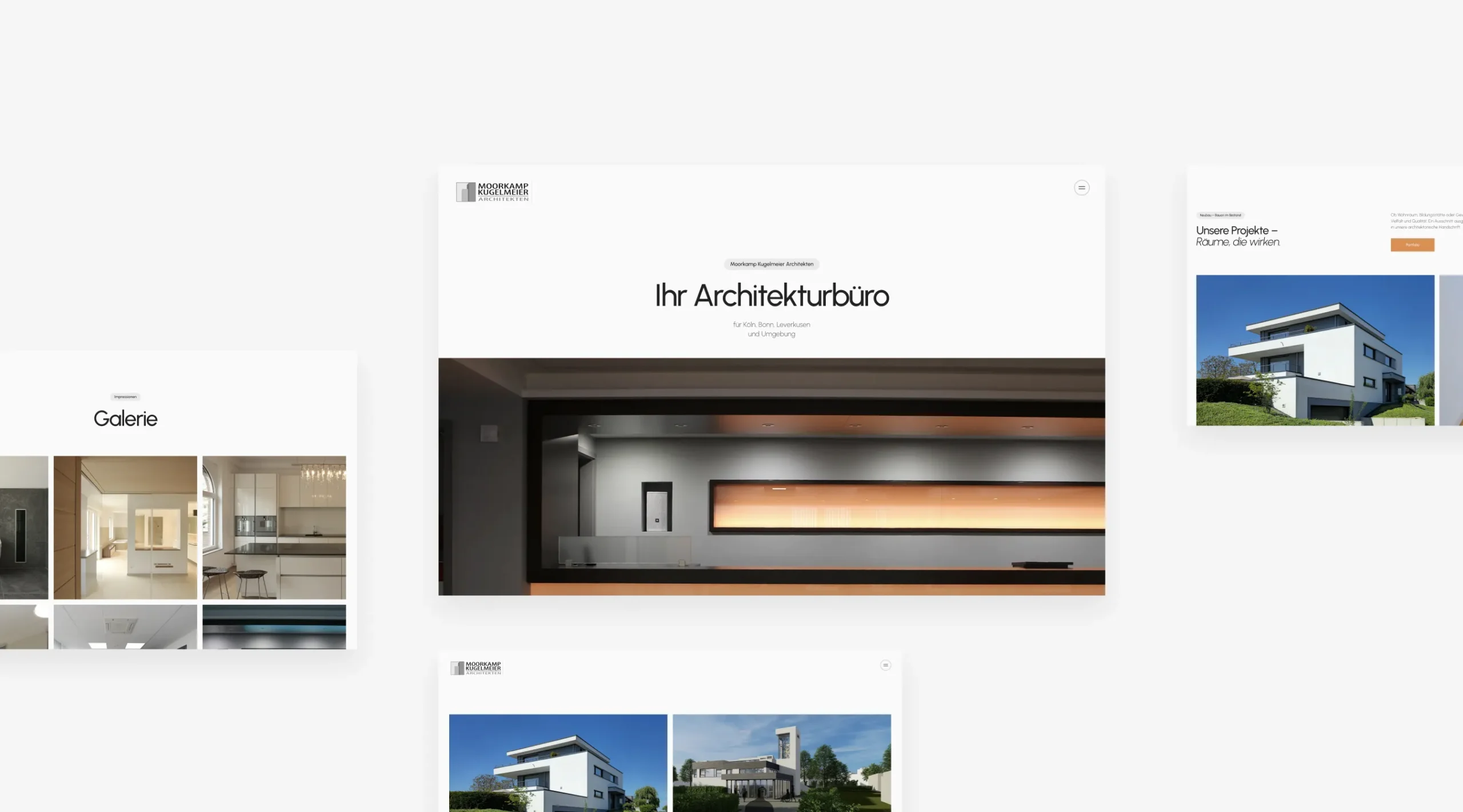 Moorkamp Kugelmeier Architekten Die neue Website von Moorkamp Kugelmeier Architekten dient als moderne digitale Visitenkarte des Büros. Sie präsentiert die bisherigen Arbeiten, das Profil des Inhabers sowie den Standort und veranschaulicht das gesamte Leistungsspektrum in einer klaren und grafisch aufbereiteten Form.